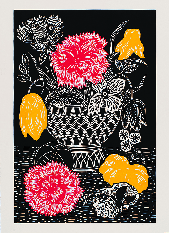 "Untitled", 2017. Linocut on watercolor paper, 100 x 70 cm.