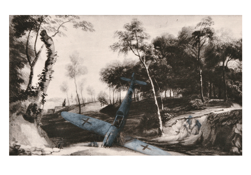 "Untitled", 2008. Oil and graphite on book page, 14,5 x 24 cm.